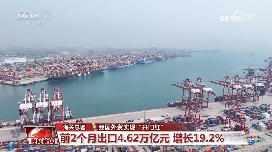 央視網(wǎng)消息:海關(guān)總署3月10日發(fā)布外貿(mào)數(shù)據(jù),今年前2個(gè)月,我國(guó)貨物貿(mào)易進(jìn)出口同比增長(zhǎng)18.3%,外貿(mào)開(kāi)局良好。